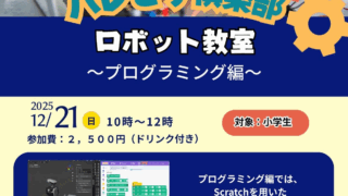 ロボット教室 プログラミング編日時:2025年12月21日(日) 10時~12時会場:ハレとケ隣のスペース(南浦和)